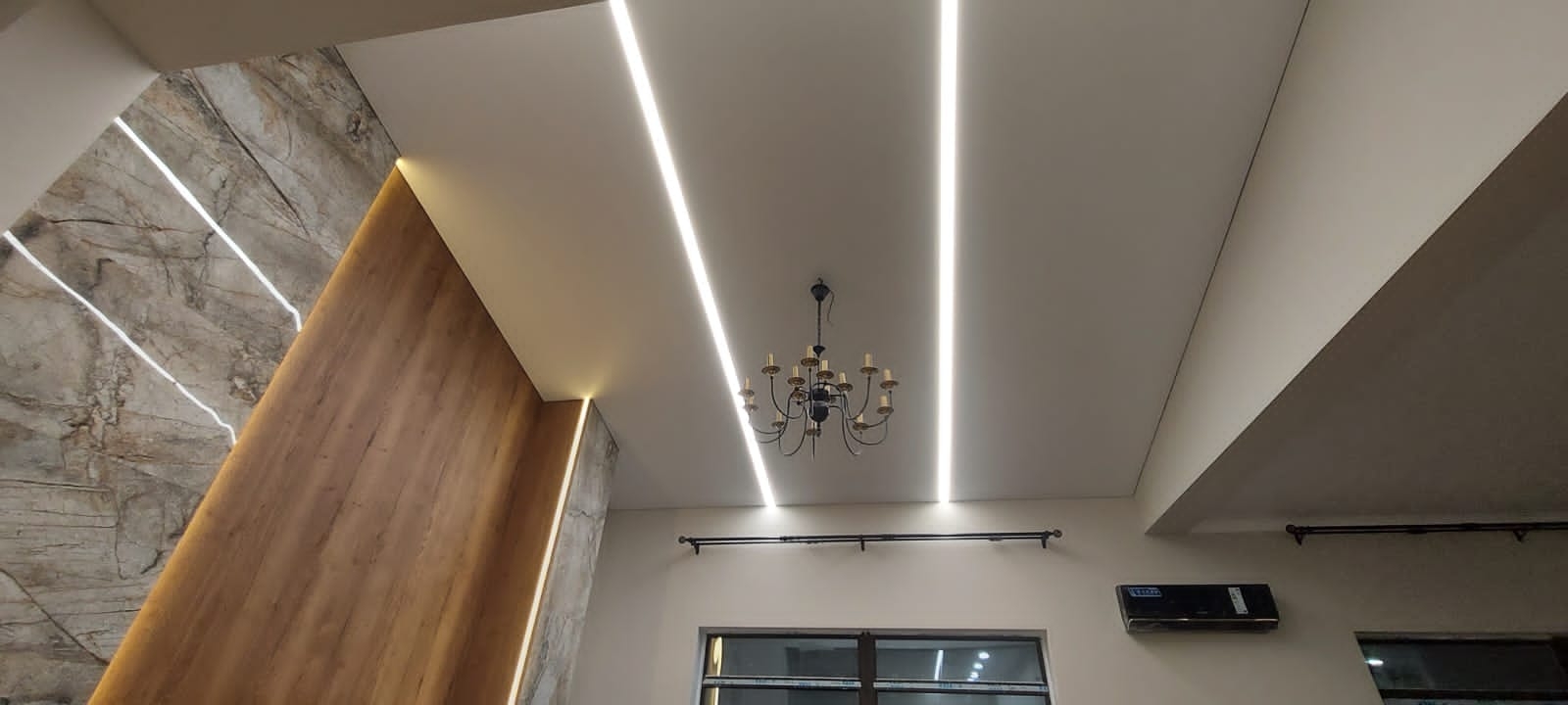 Световые линии на натяжном потолке - это стильный и современный способ освещения