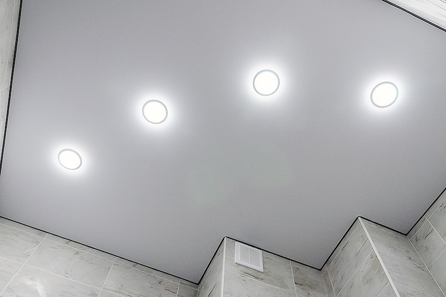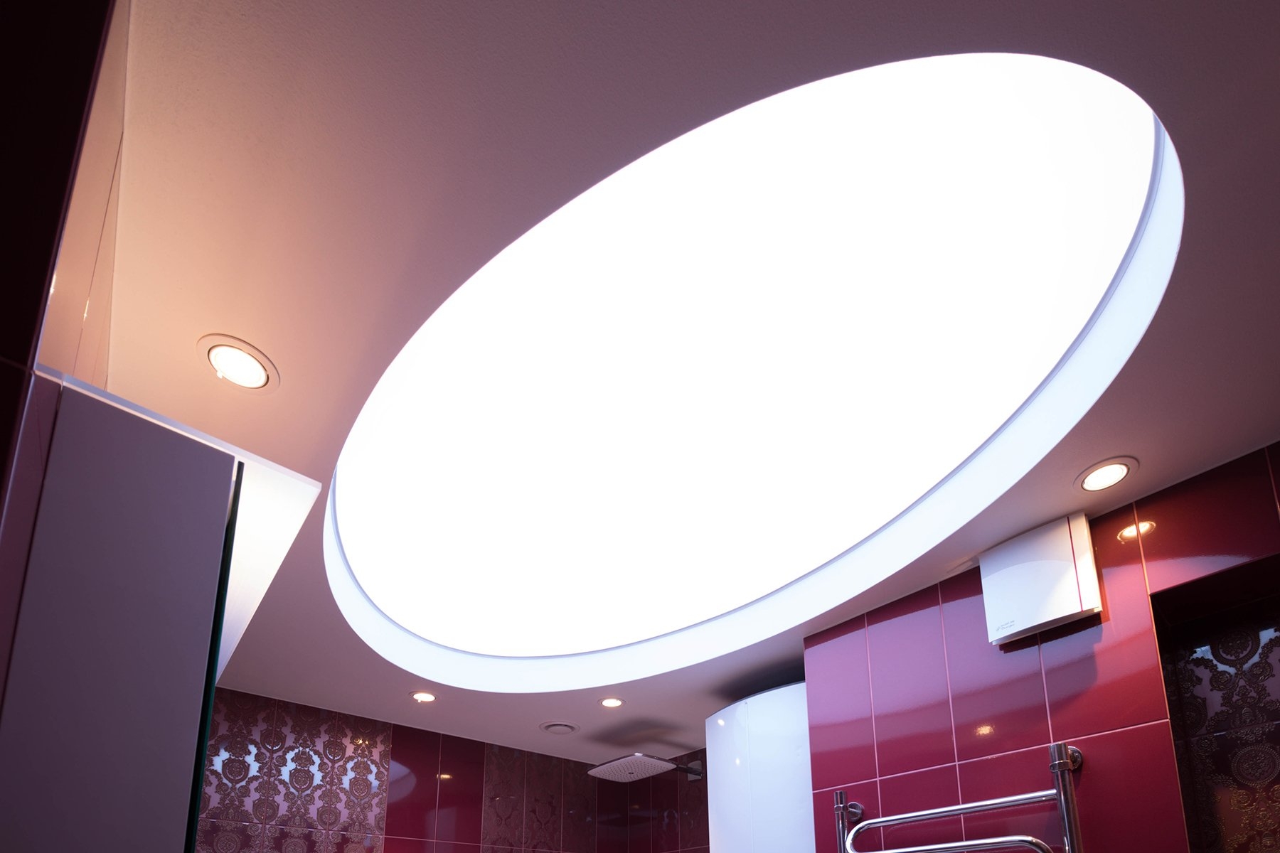 Достоинства натяжных потолков с LED подсветкой Экономия средств. Светодиодные лампы обеспечивают дополнительное освещение комнаты, потребляя, при этом, небольшое количество электроэнергии – от 4 до 15 Вт. Затраты на приобретение осветительного светодиодного оборудования оправдываются за счет длительного срока эксплуатации (в среднем 25 000 часов); Безопасность. LED подсветка не склонна к перегреву, конструкция потолка не повреждается; Универсальность. Светодиодной подсветкой можно оборудовать одноуровневый и многоуровневый потолок. Многоярусная конструкция позволяет устанавливать системы освещения различного уровня сложности; Возможность регулировки. Интенсивность и яркость свечения можно изменять с помощью пульта ДУ. Потолки со встроенной интеллектуальной системой освещения переключают свет в заданном алгоритме, создавая разнообразную цветовую гамму; Водонепроницаемость - эксплуатация в обычных и влажных помещениях: ванной, бассейне, бане. Специальная водонепроницаемая силиконовая оболочка защищает изделие от воздействия влаги и пара. Показатели износостойкости, противопожарные свойства и степень экологической безопасности потолков с подсветкой зависит от материала потолочной поверхности.
