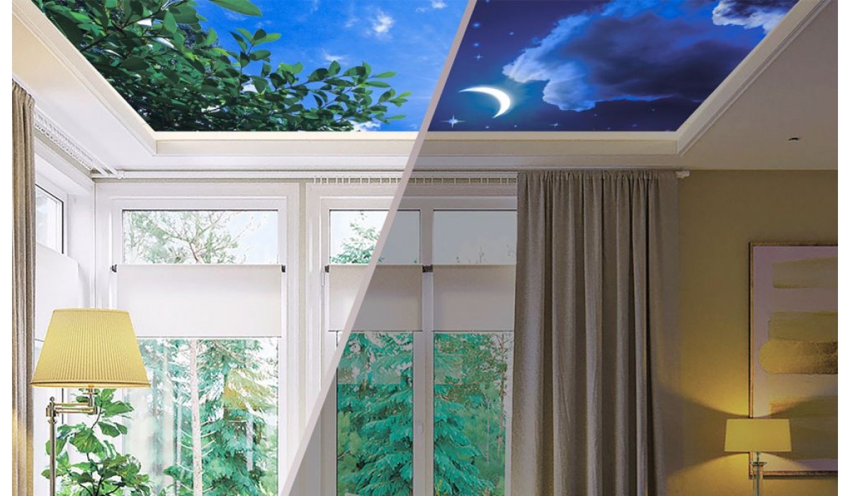 Светящийся натяжной потолок одновременно является потолком и осветительным прибором. В выключенном состоянии он представляет собой белую матовую поверхность, а при включении наполняет помещение равномерным ярким и одновременно мягким светом.